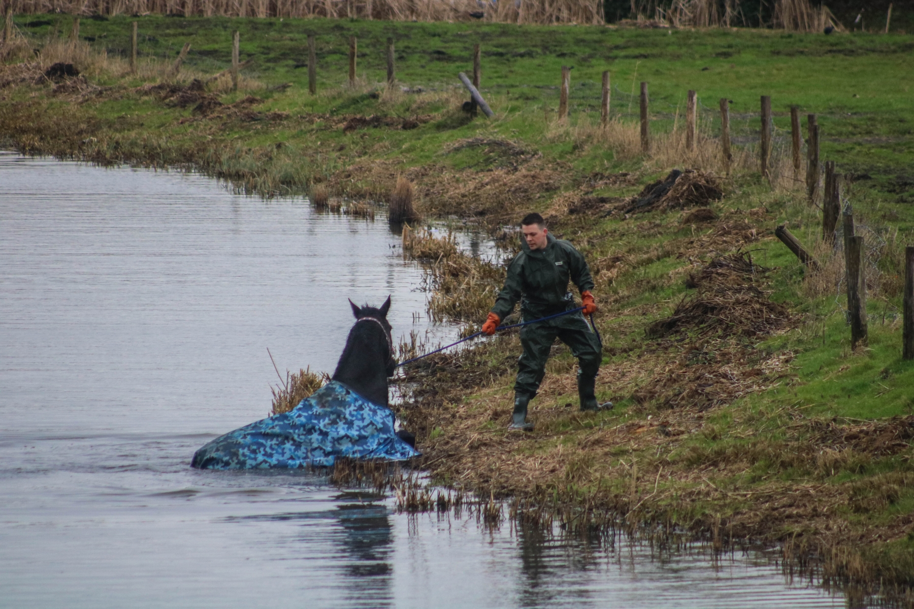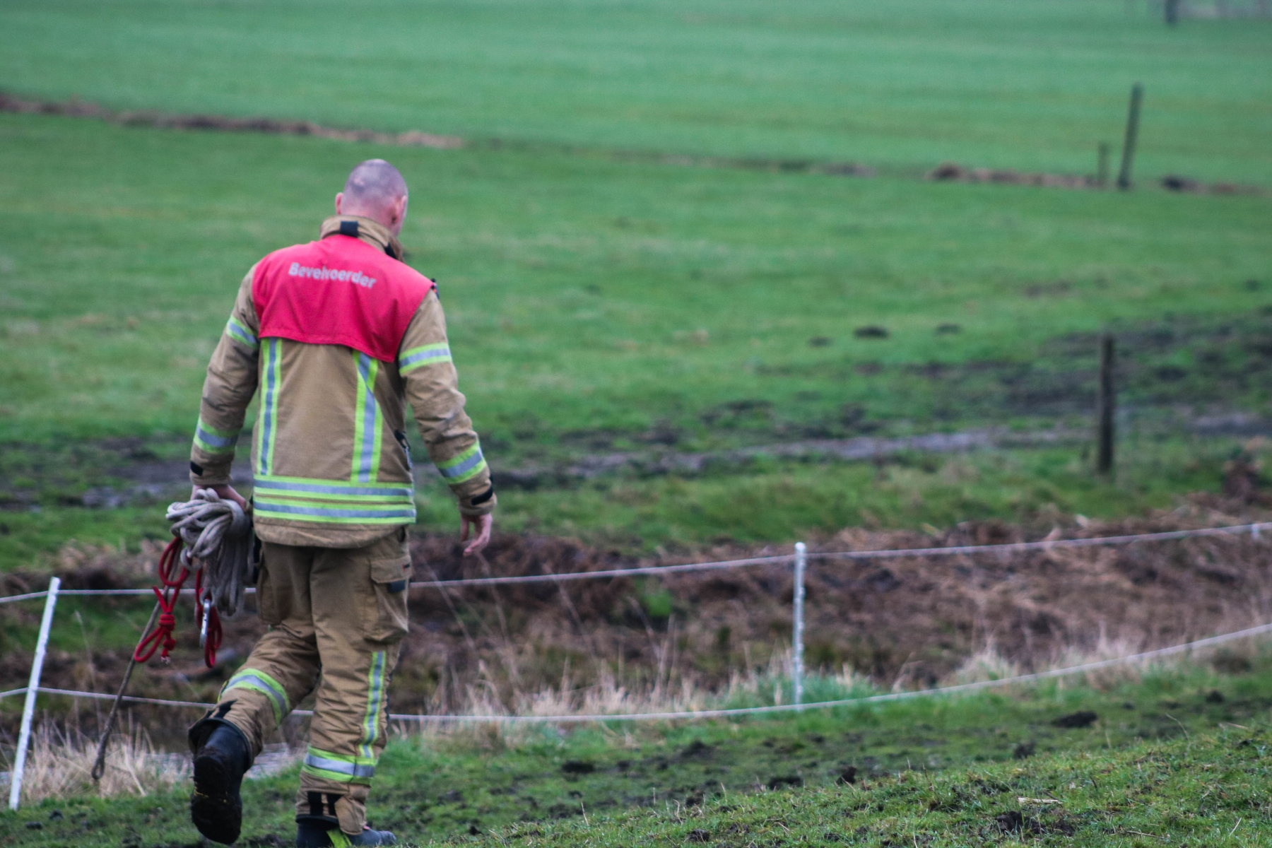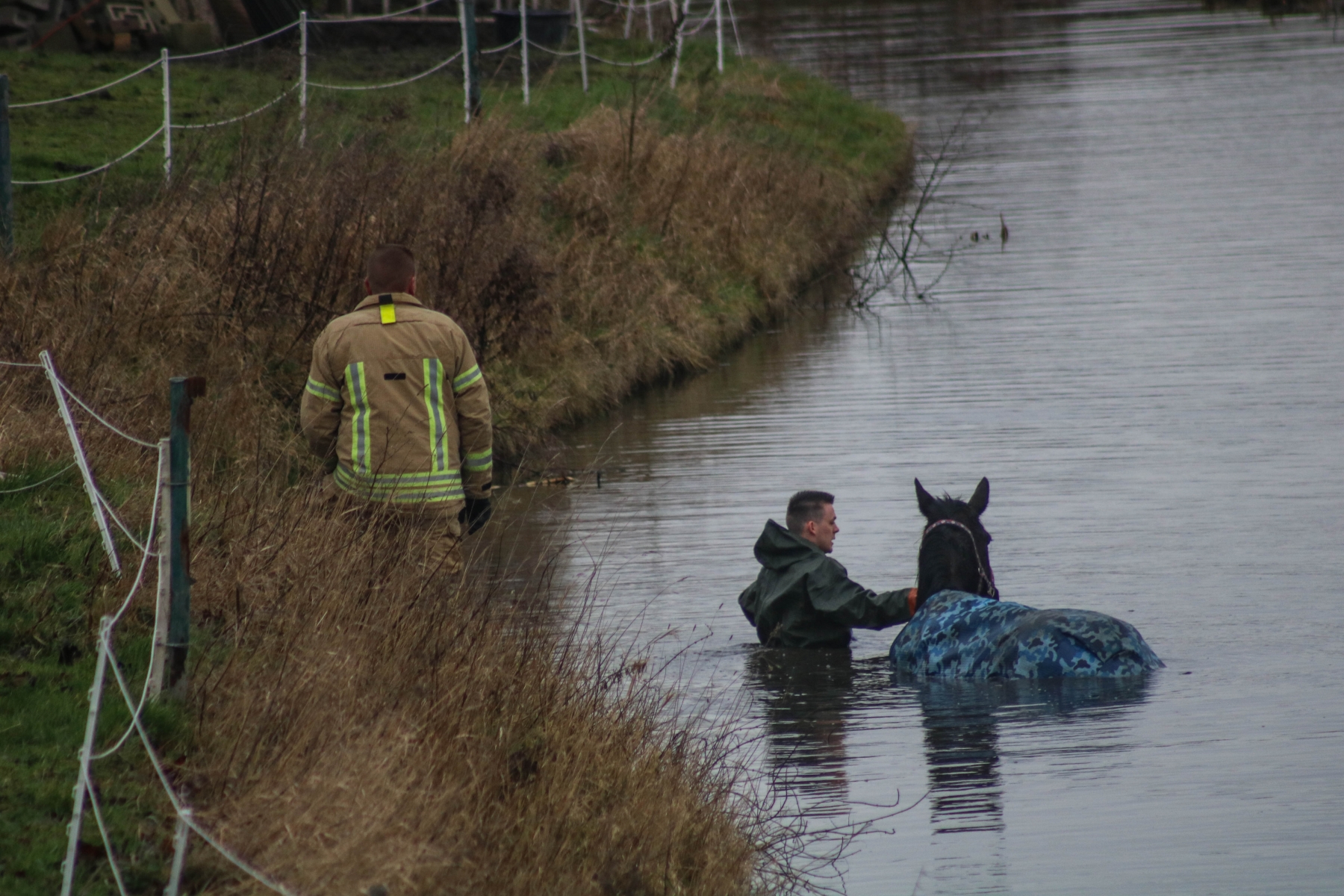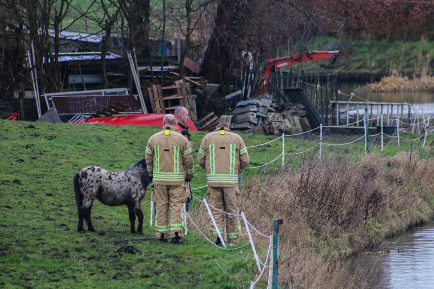 Door de ervaring van de brandweerlieden was het paard al snel de sloot weer uit.