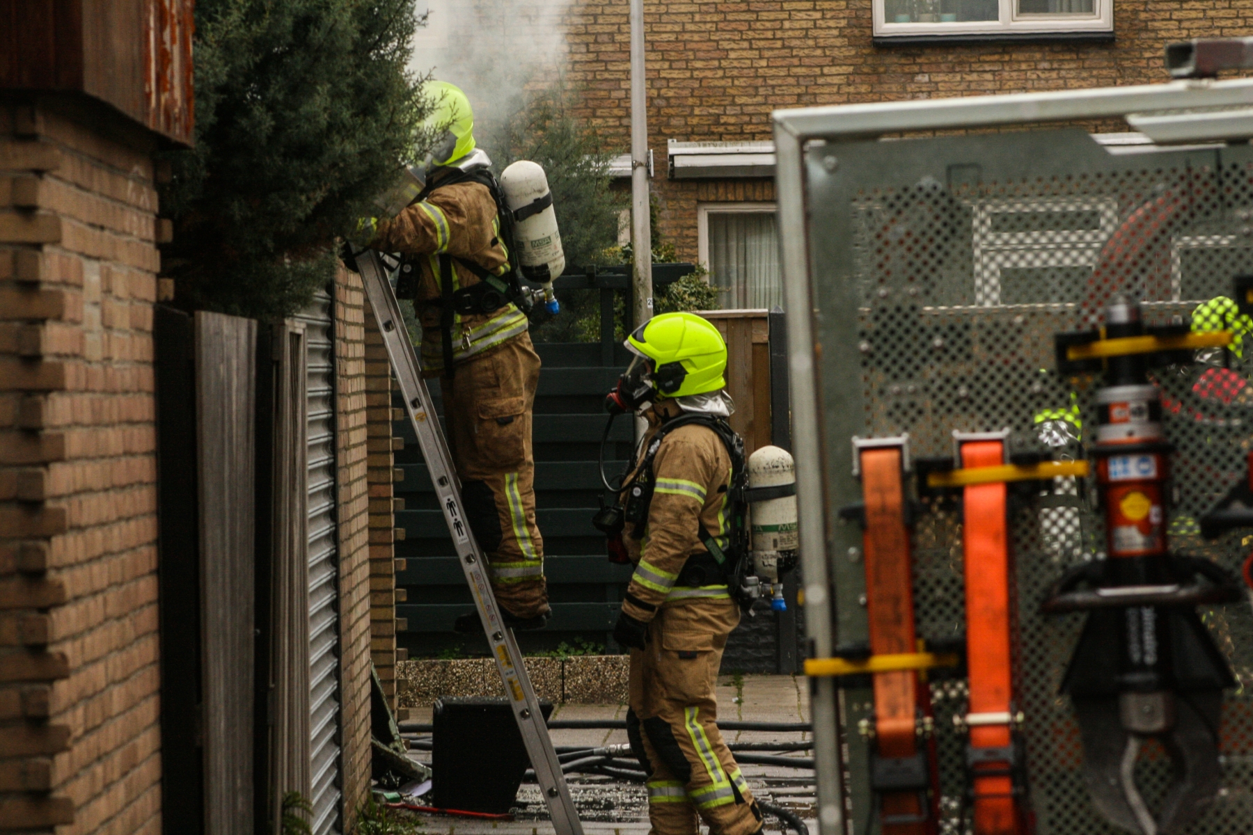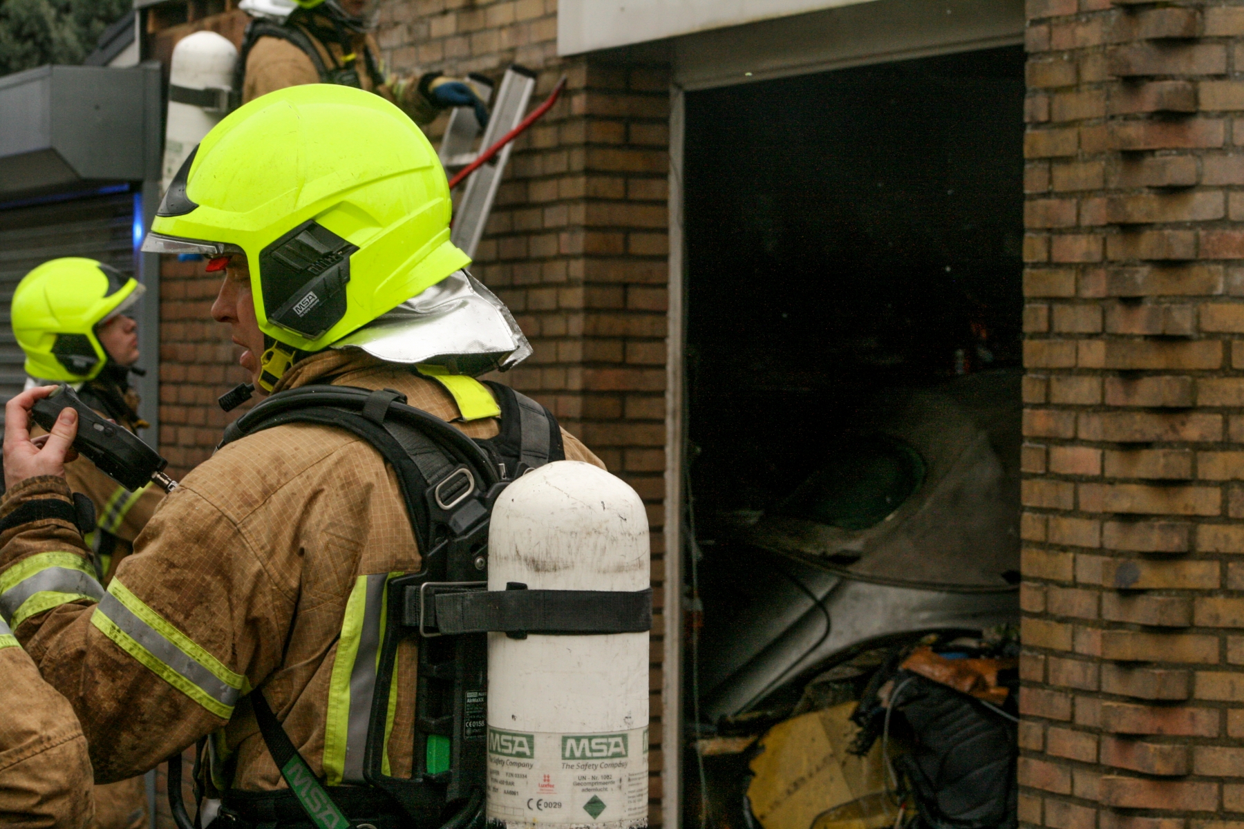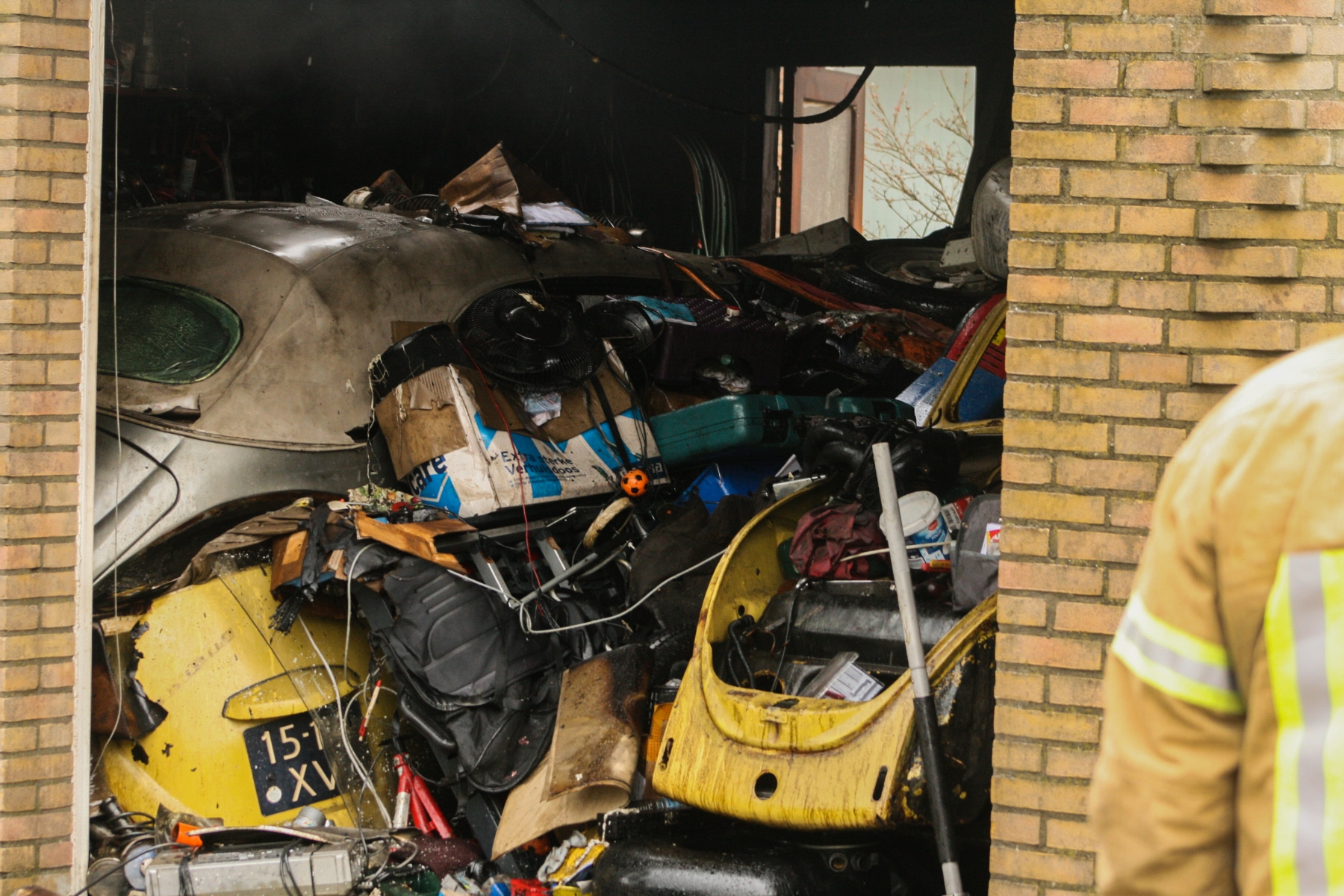 In de garagebox zouden nog voertuigen staan. Een reden dus om voorzichtig te zijn. Ook stonden er een aantal gasflessen binnen, deze heeft de brandweer verwijderd.