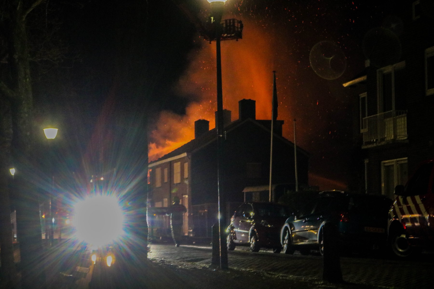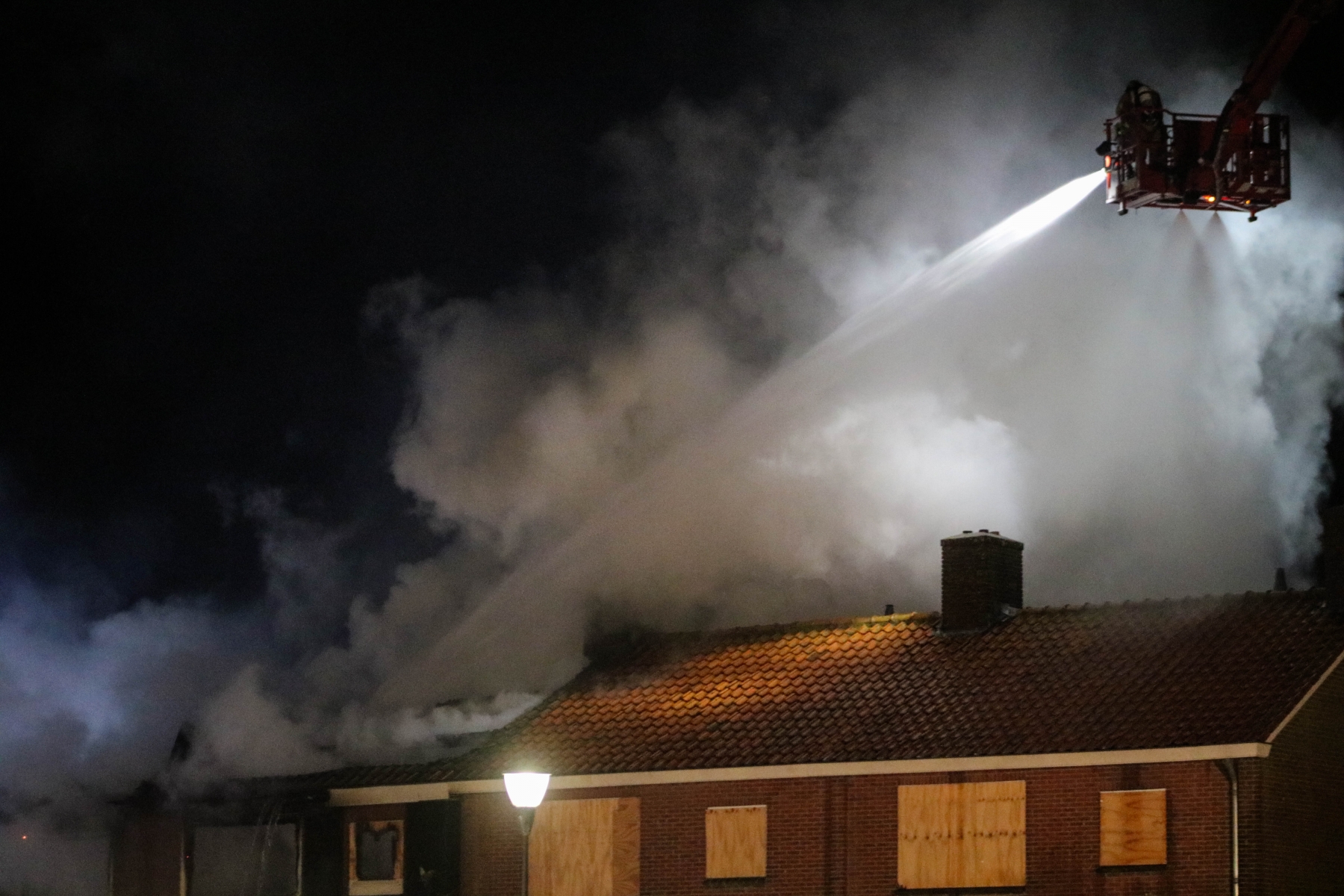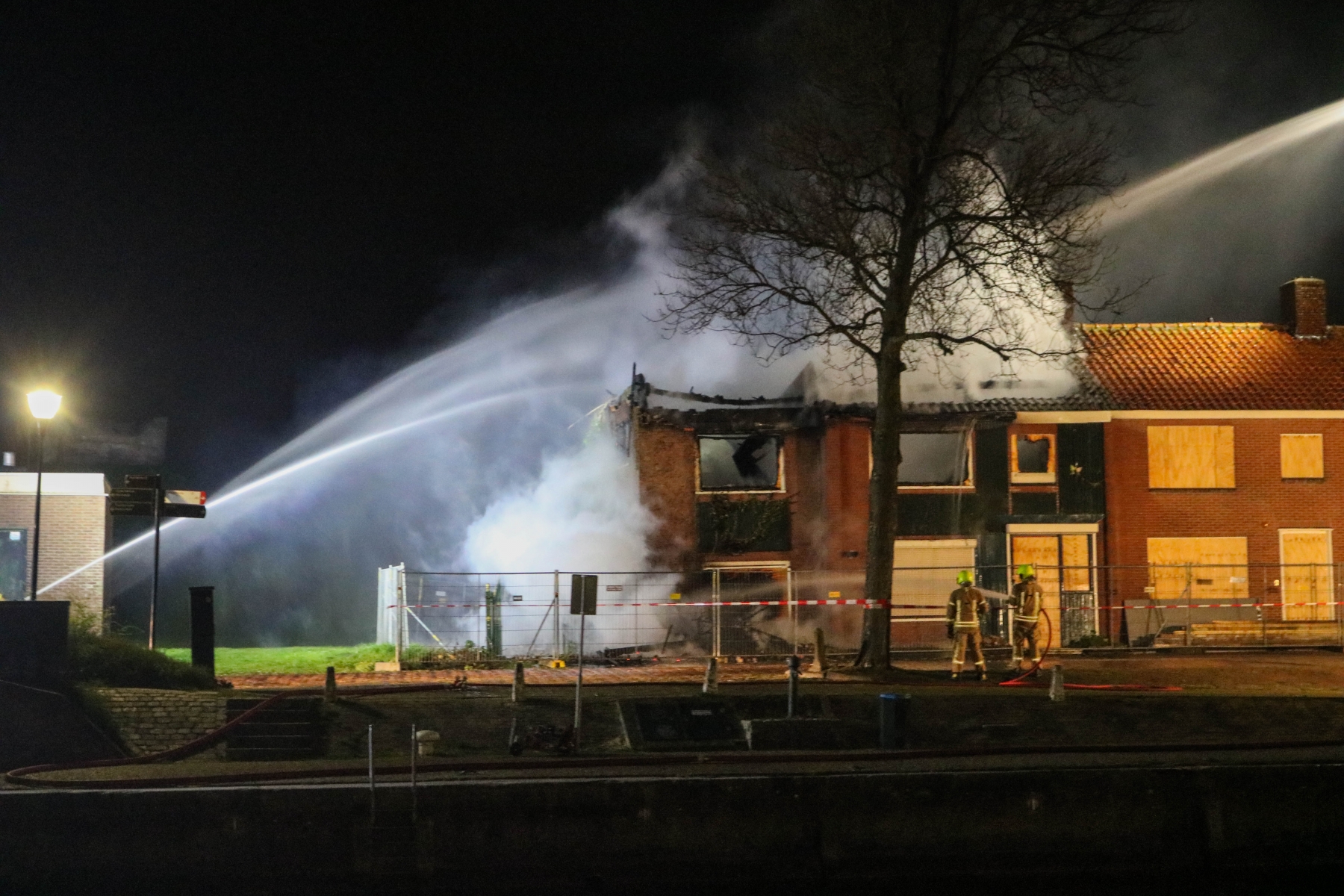 Vanwege instortingsgevaar is er vanaf buitenaf geblust en is geprobeerd de andere twee aangrenzende woningen te behouden, wat gelukt is. Bij de brand is gelukkig niemand gewond geraak.