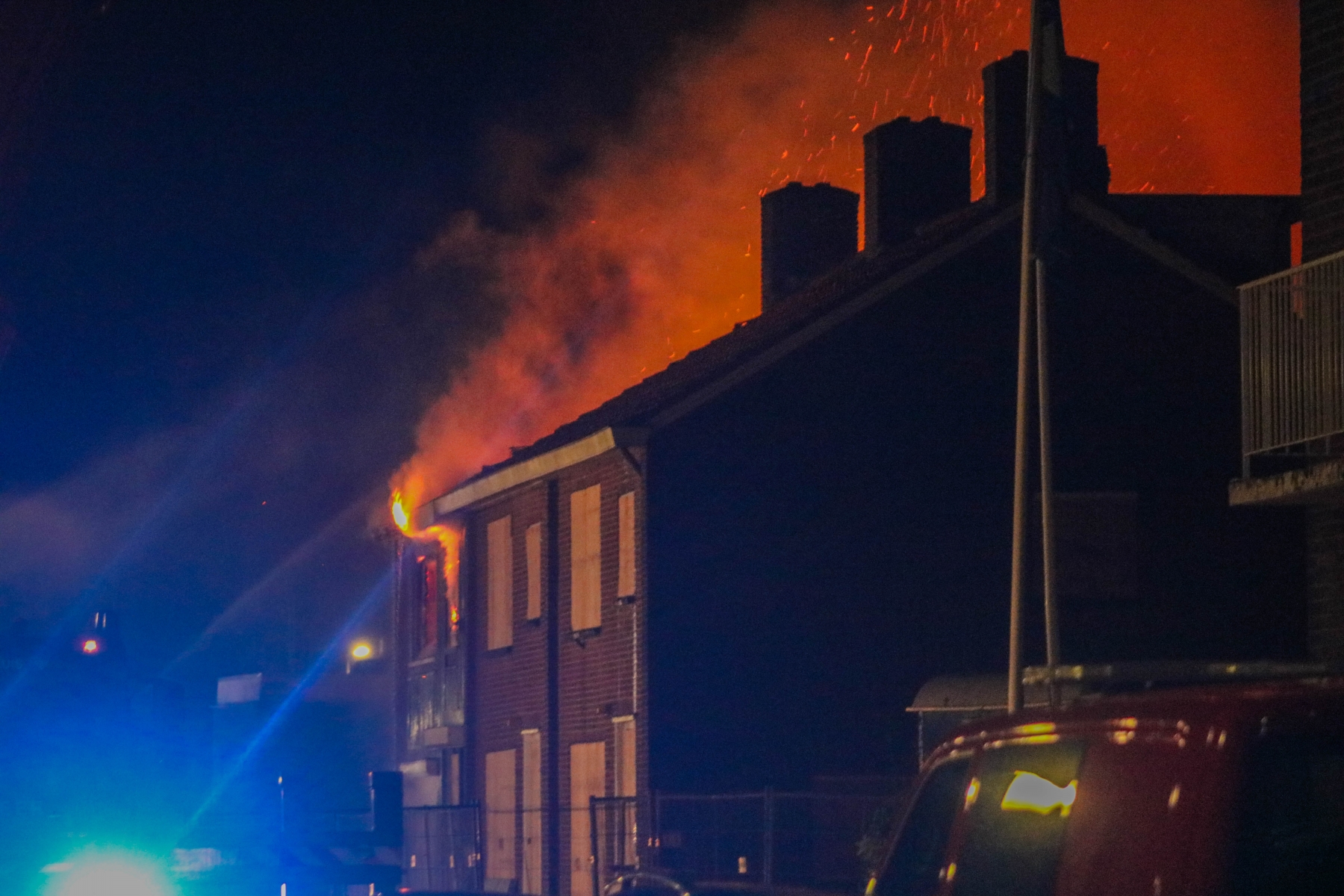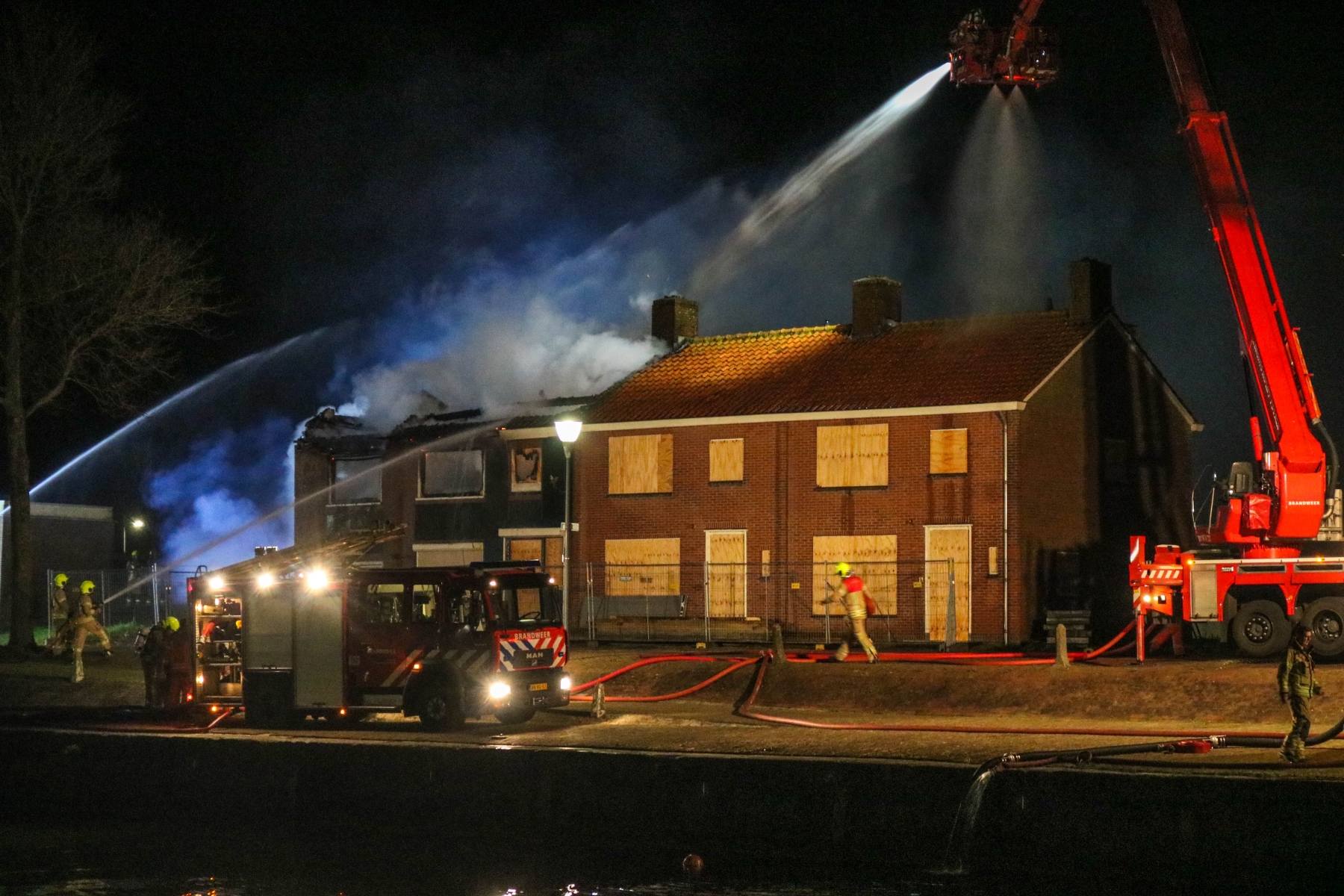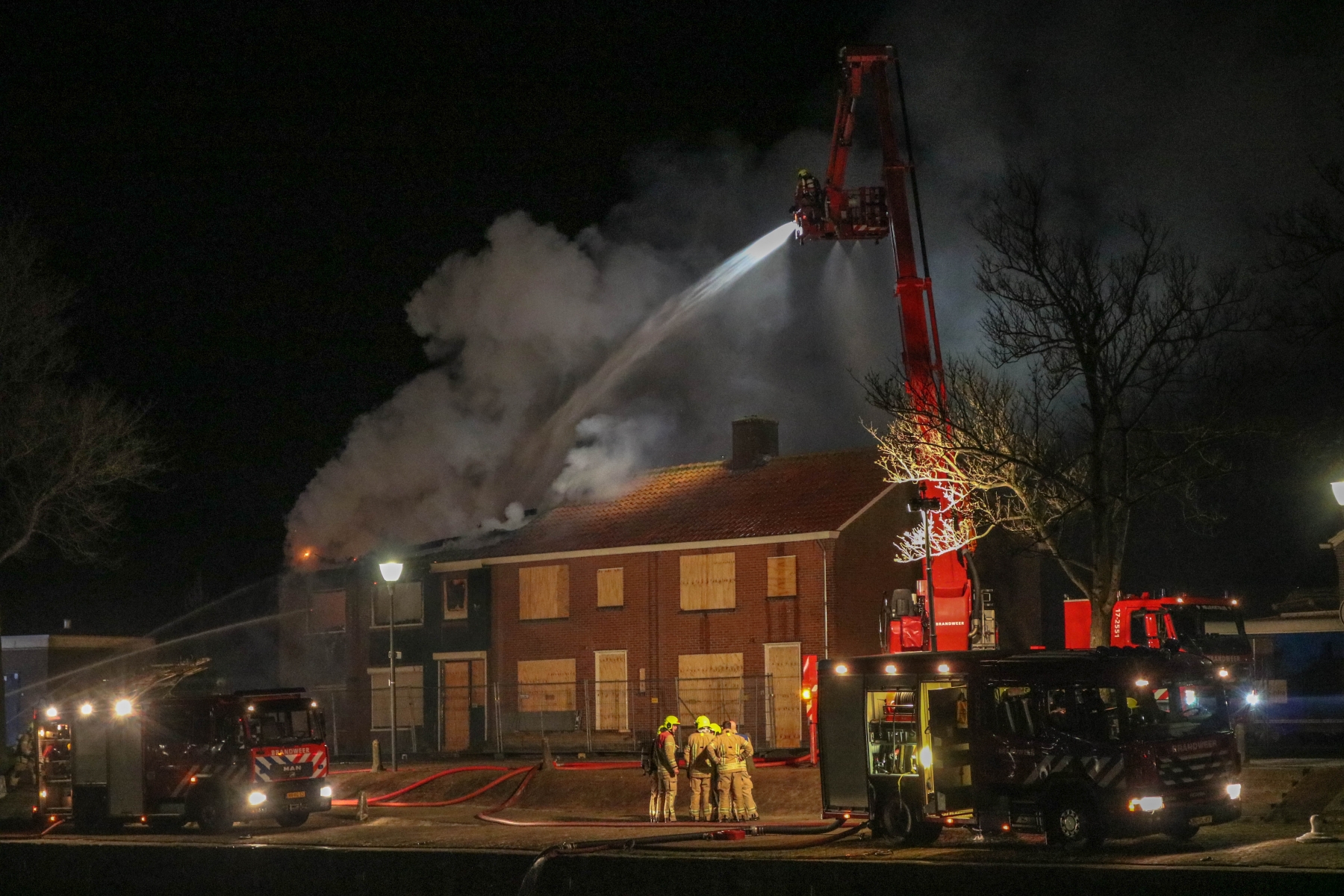De brandweer schaalde bijna direct op naar ‘grote brand’. Bij aankomst bleek de brand al te zijn overgeslagen naar de naastgelegen woning, deze was eveneens leegstaand. De rook trok richting het Haringvliet. Toch zijn 5 woningen ontruimd omdat de rook richting andere woningen trok.