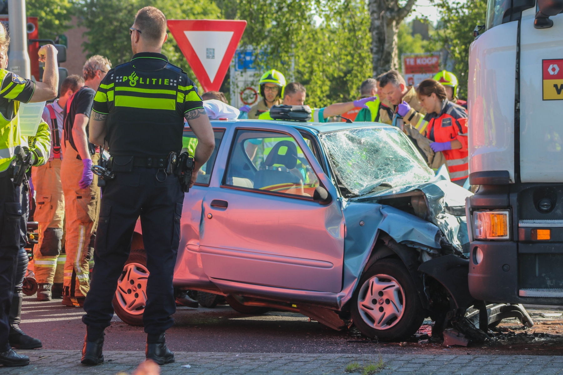 De auto is door nog onbekende reden op de verkeerde rijstrook gekomen en tegen een vrachtwagen geklapt. Een onbemande brandweerwagen was al snel ter plaatse en is direct de reanimatie gestart. Ook een traumahelikopter is ter plaatse om de persoon proberen te redden, maar dit mocht helaas niet meer baten.