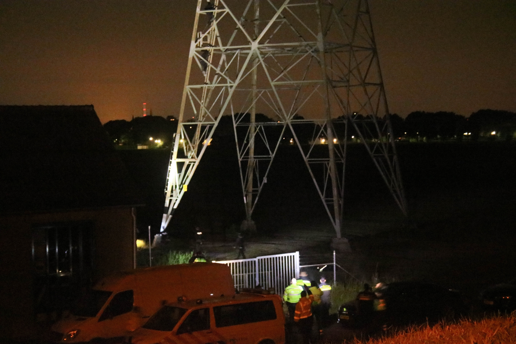 Inmiddels waren ook het arrestatieteam en onderhandelaars van de politie onderweg. Al snel kon bevestigd worden dat er inderdaad een persoon of meerdere personen in de mast zaten, en dan wel in de bovenste arm. In overleg met de netbeheerder, de brandweer en andere instanties is besloten dat om de persoon/personen naar beneden te halen de stroom van de kabels af moest. Hierop hebben hulpdiensten opgeschaald naar GRIP 1, vooral om in te schatten wat de uitschakeling zou betekenen voor de Botlek.