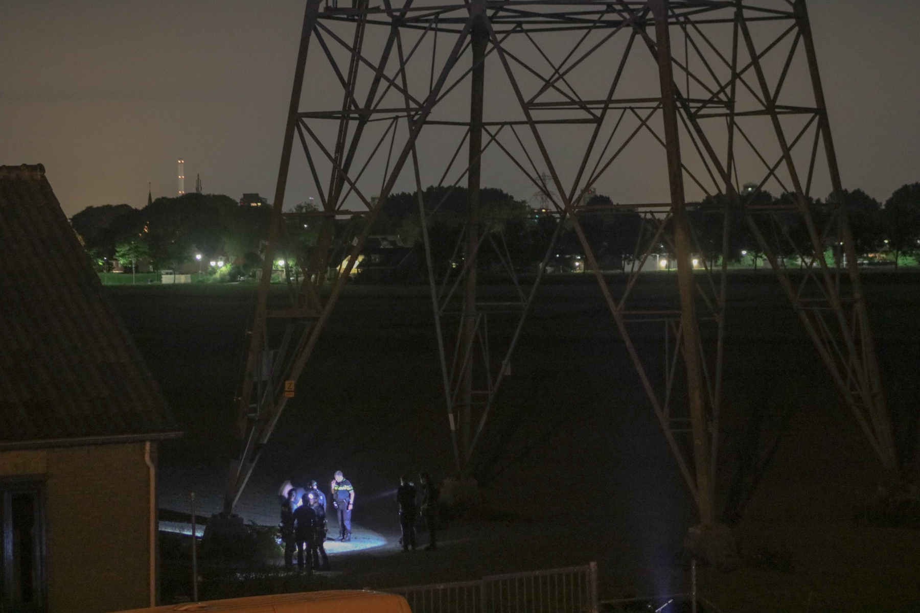 Hekelingen – Rond 22:30 gisteravond heeft de politie beweging gezien in een hoogspanningsmast aan de Hekelingseweg nabij de veerpont. Omdat de agenten er vrij zeker van waren iemand te zien hebben zij assistentie gevraagd vanuit de lucht. De politiehelikopter zag met zijn warmtebeeldcamera inderdaad warmtebronnen.