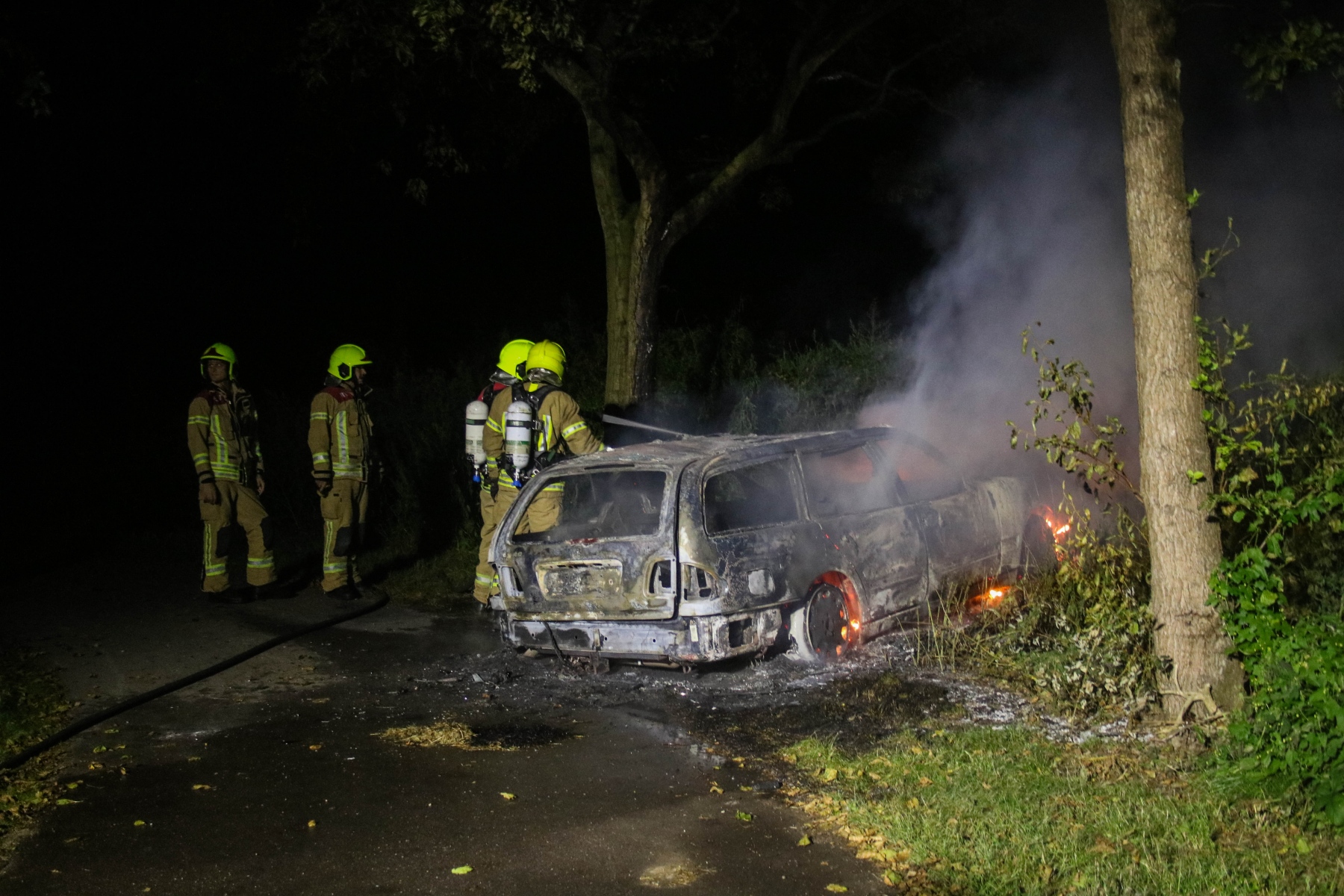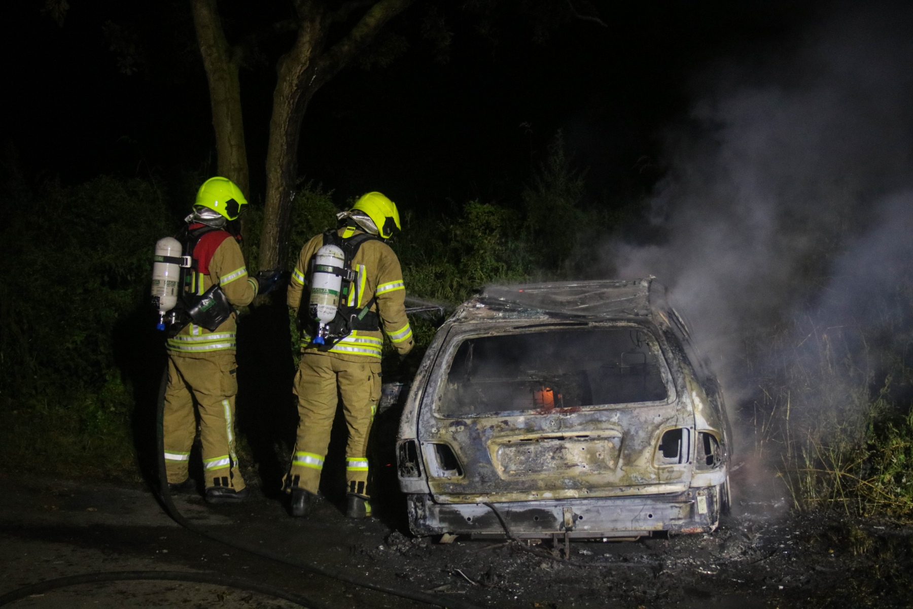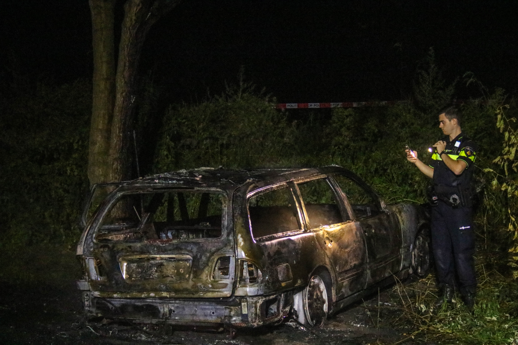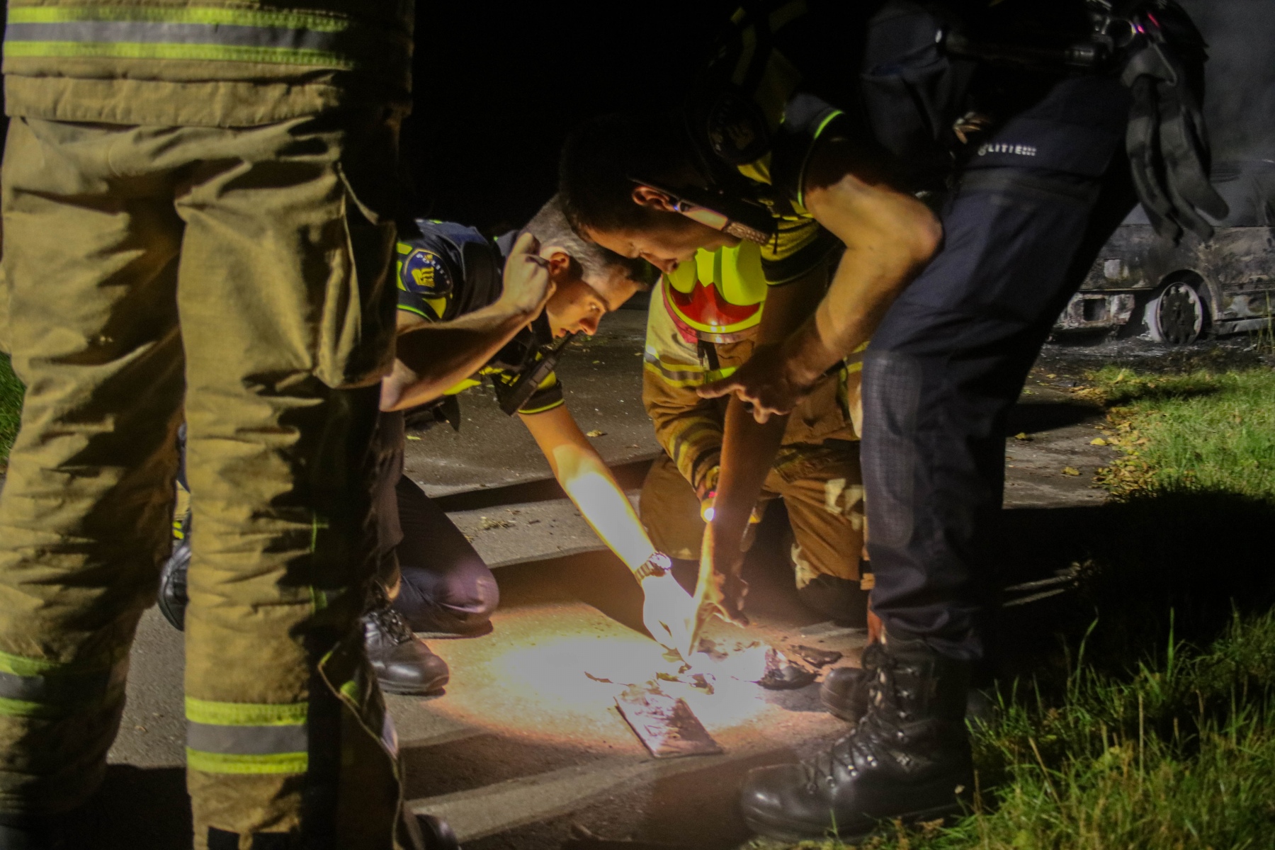 Al snel bleek dat het waarschijnlijk om brandstichting ging. Bij aankomst was de bestuurdersdeur open en de auto stond onder verdachte omstandigheden. Het kenteken is veiliggesteld en na wat gepuzzel kon deze gelezen worden.