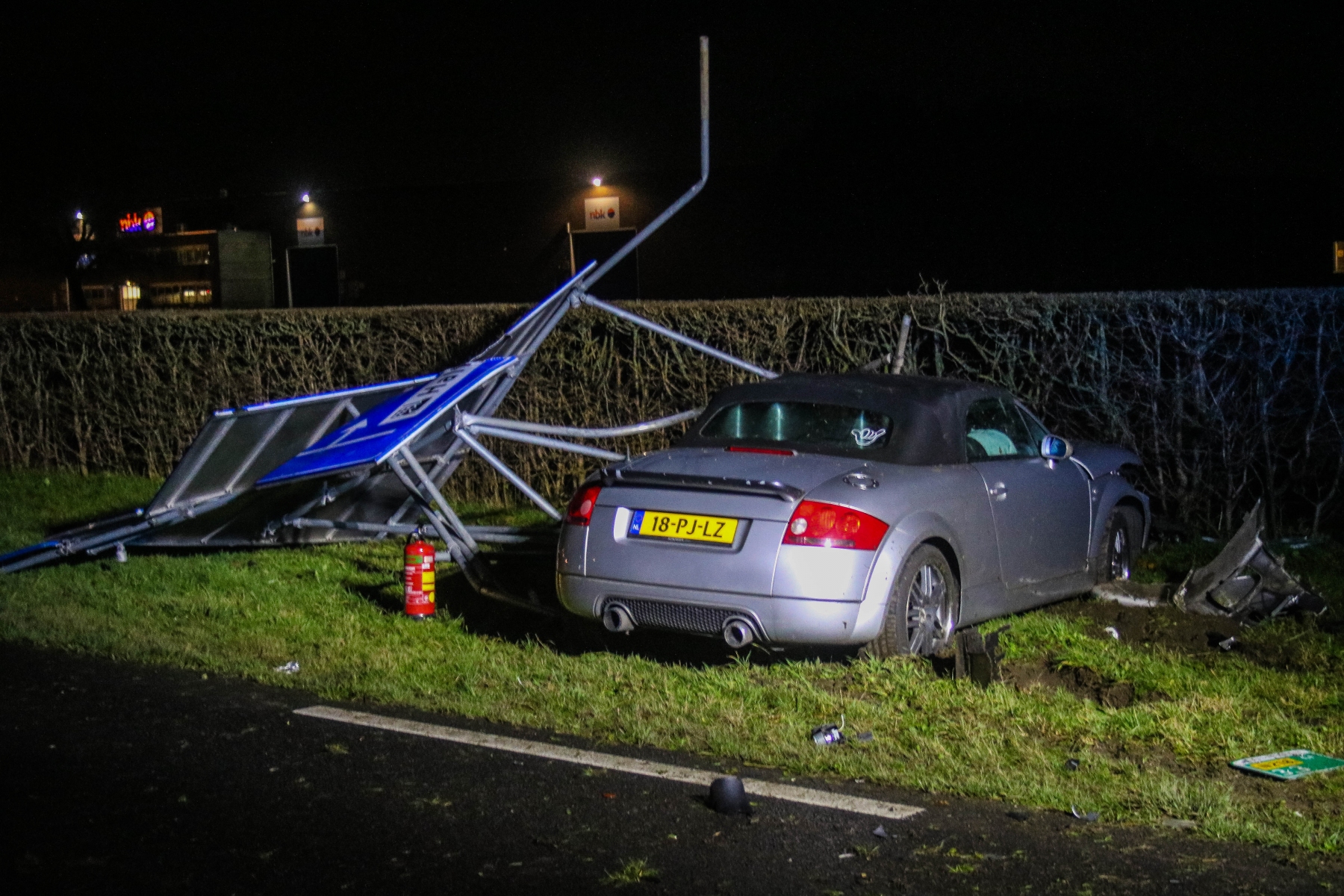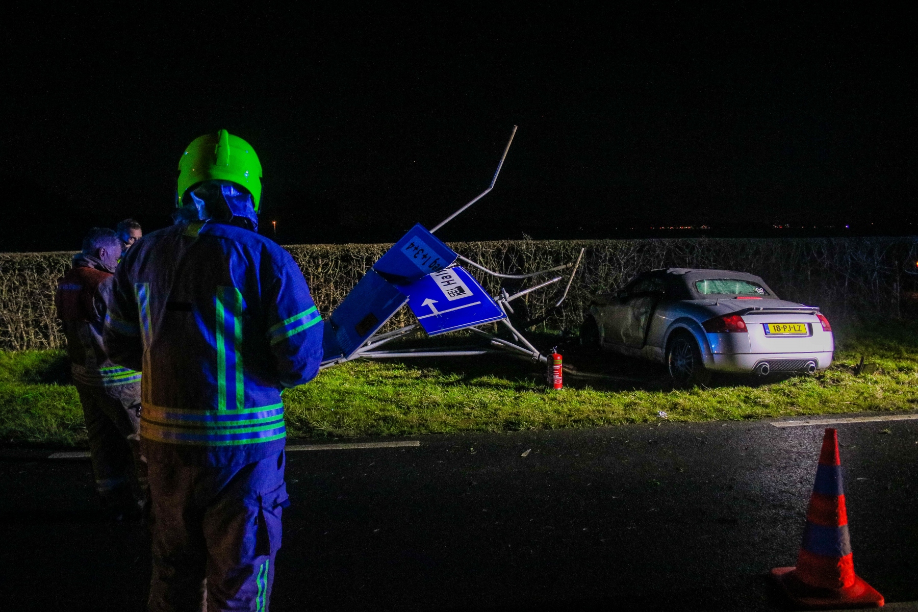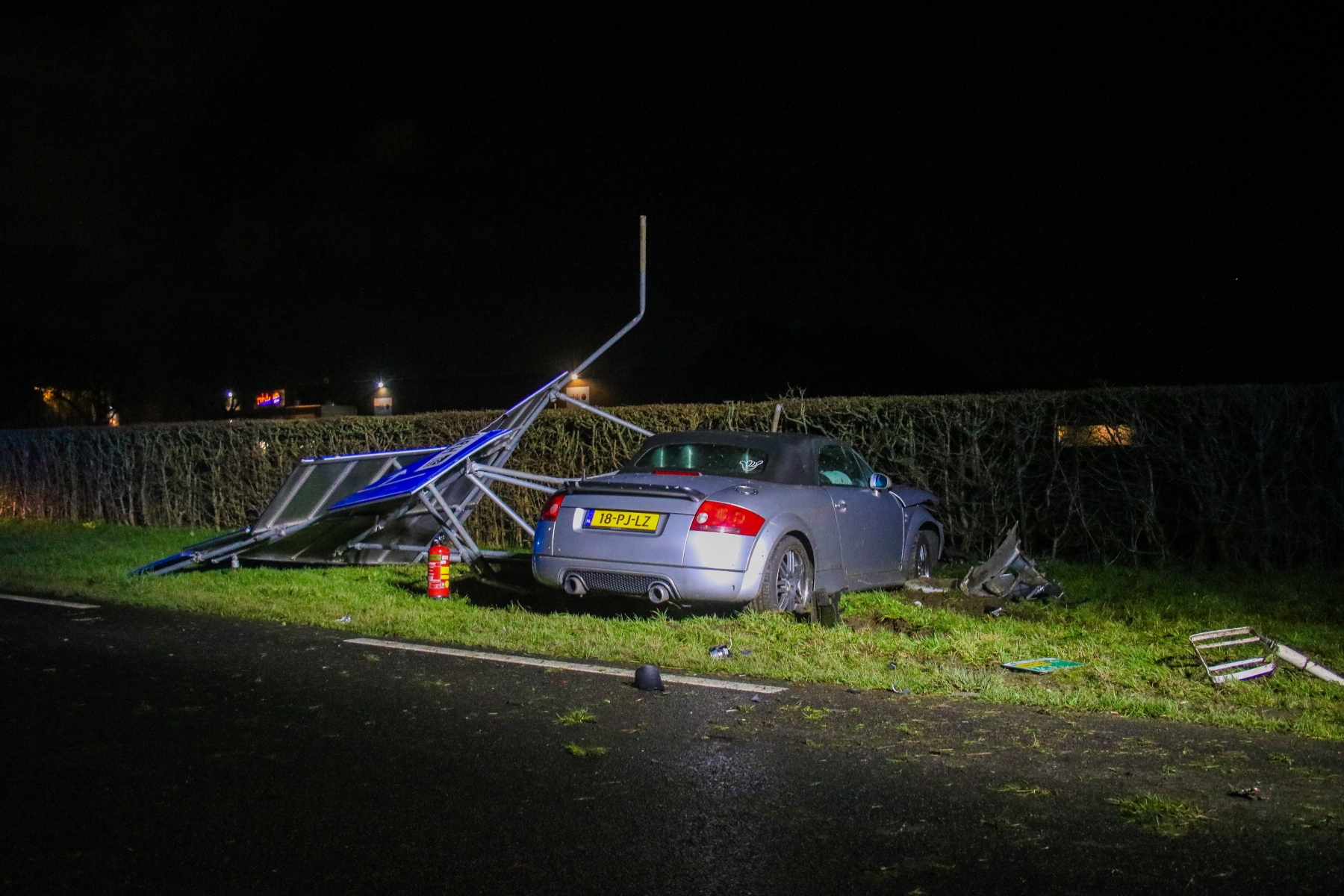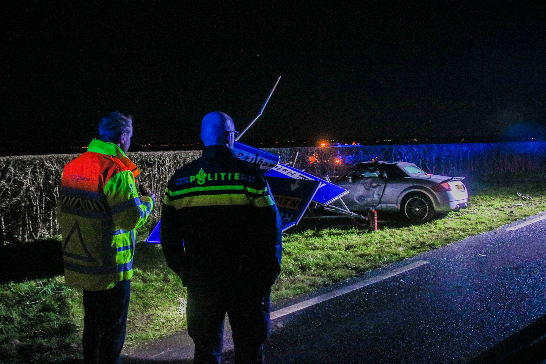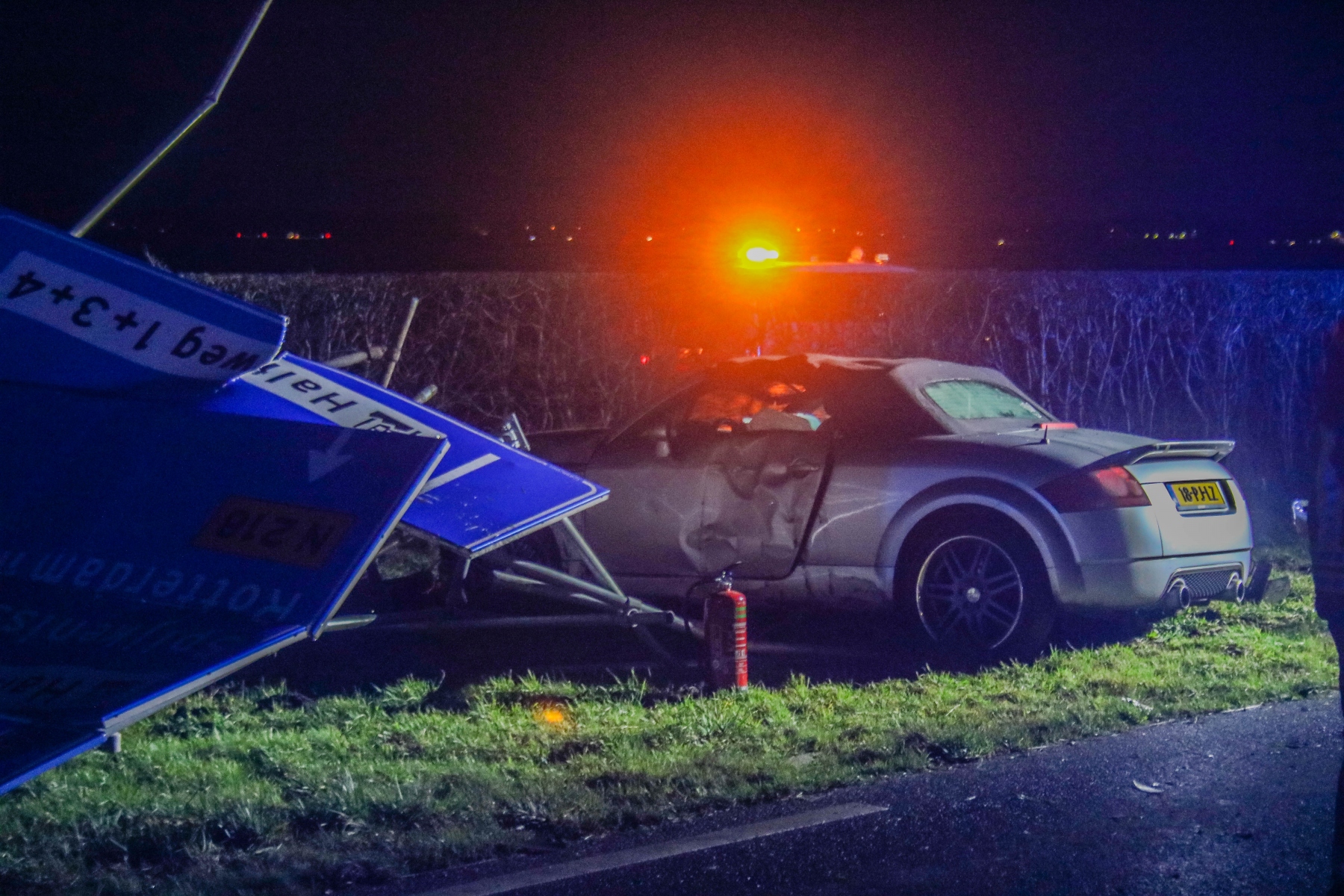 De auto’s reden vanaf Geervliet richting Spijkenisse. Door nog onbekende oorzaak reed een Audi tegen een andere auto aan, welke via de andere rijbaan de sloot in reed. De Audi knalde vervolgens op een groot verkeersbord.