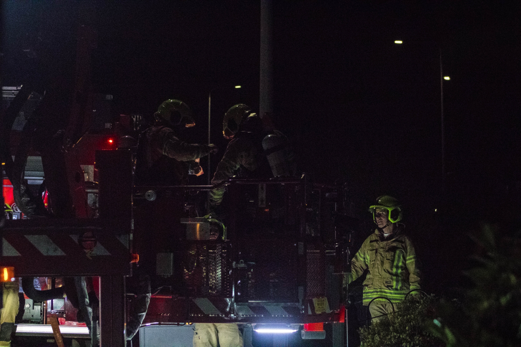 De brand werd iets voor 10 uur vanavond ontdekt. Wanneer de brandweer aankwam zagen zij een flinke vonkenregen. De hoogwerker van brandweer Spijkenisse heeft de brandweer van Zuidland bijgestaan.