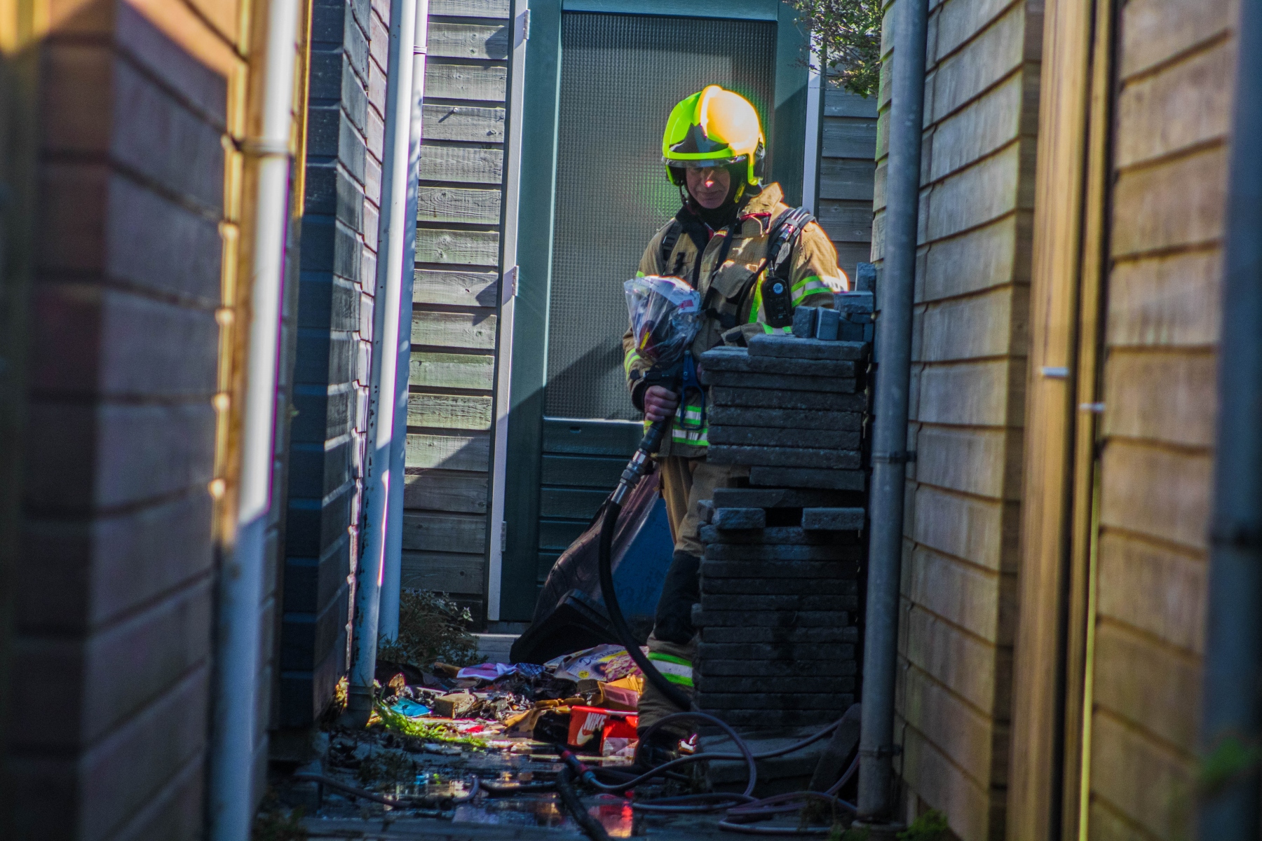 Zuidland – Vanmorgen rond kwart over 11 is er in een tuin aan het Oostendeelplein brand ontstaan in een afvalcontainer in een achtertuin.