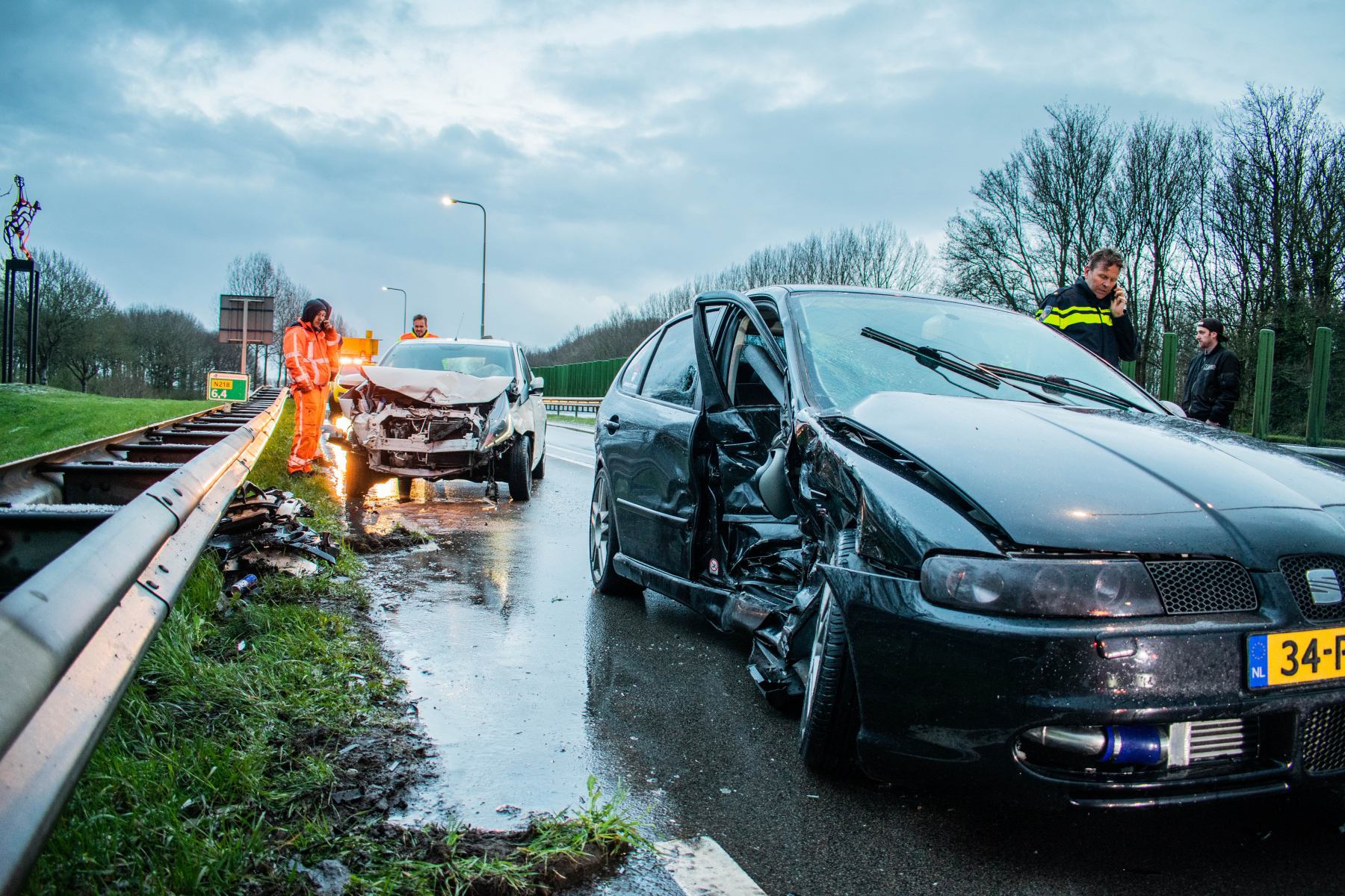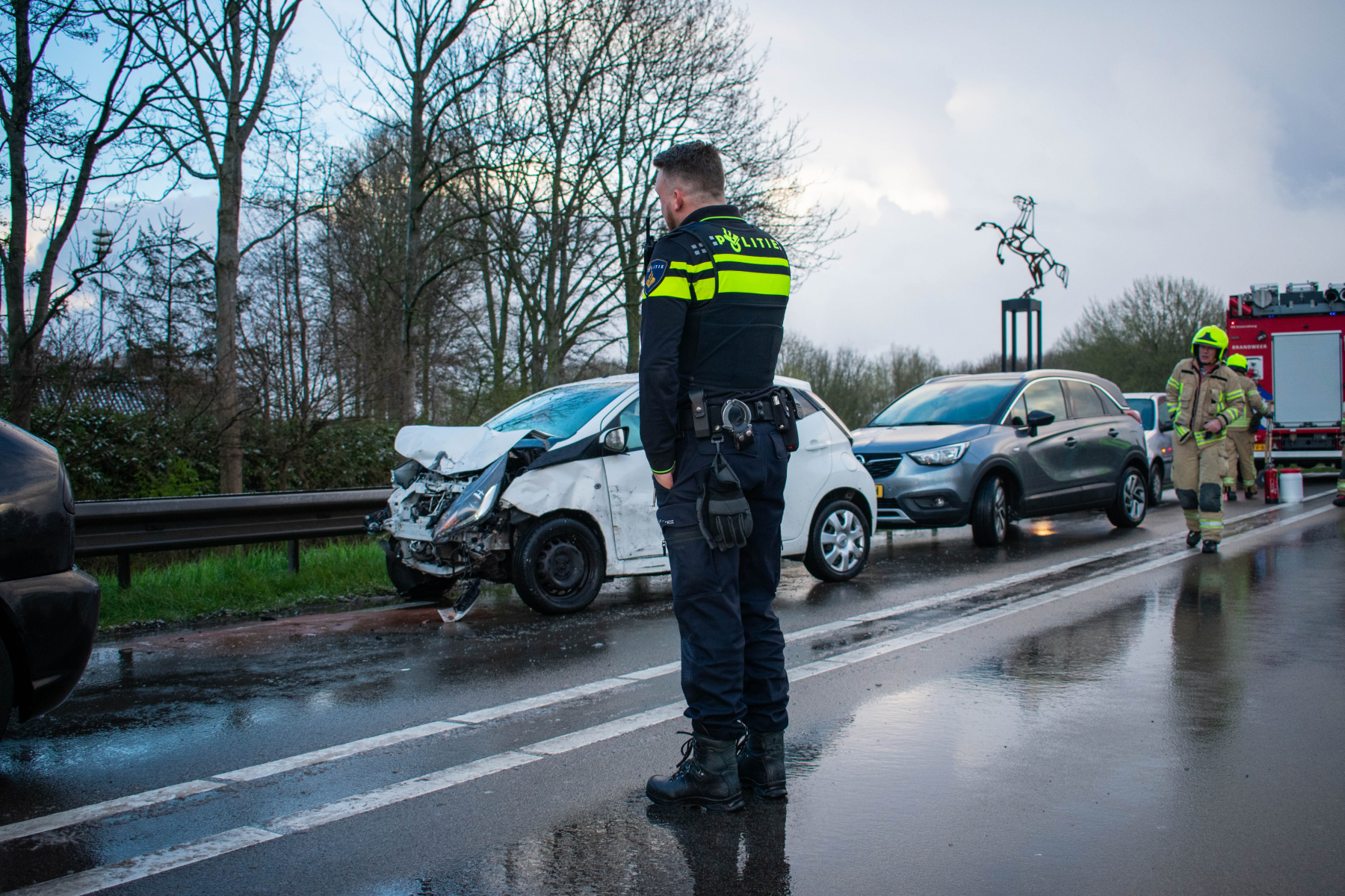 De bestuurders zijn gehoord door de politie. Eén van de bestuurders bleek mee te zijn gegaan met de ambulance waarin zijn vriendin zat, terwijl deze nog een alcohol test moest ondergaan. Deze is alsnog verricht bij aankomst in het ziekenhuis. De mogelijk boosdoener is de gladheid.