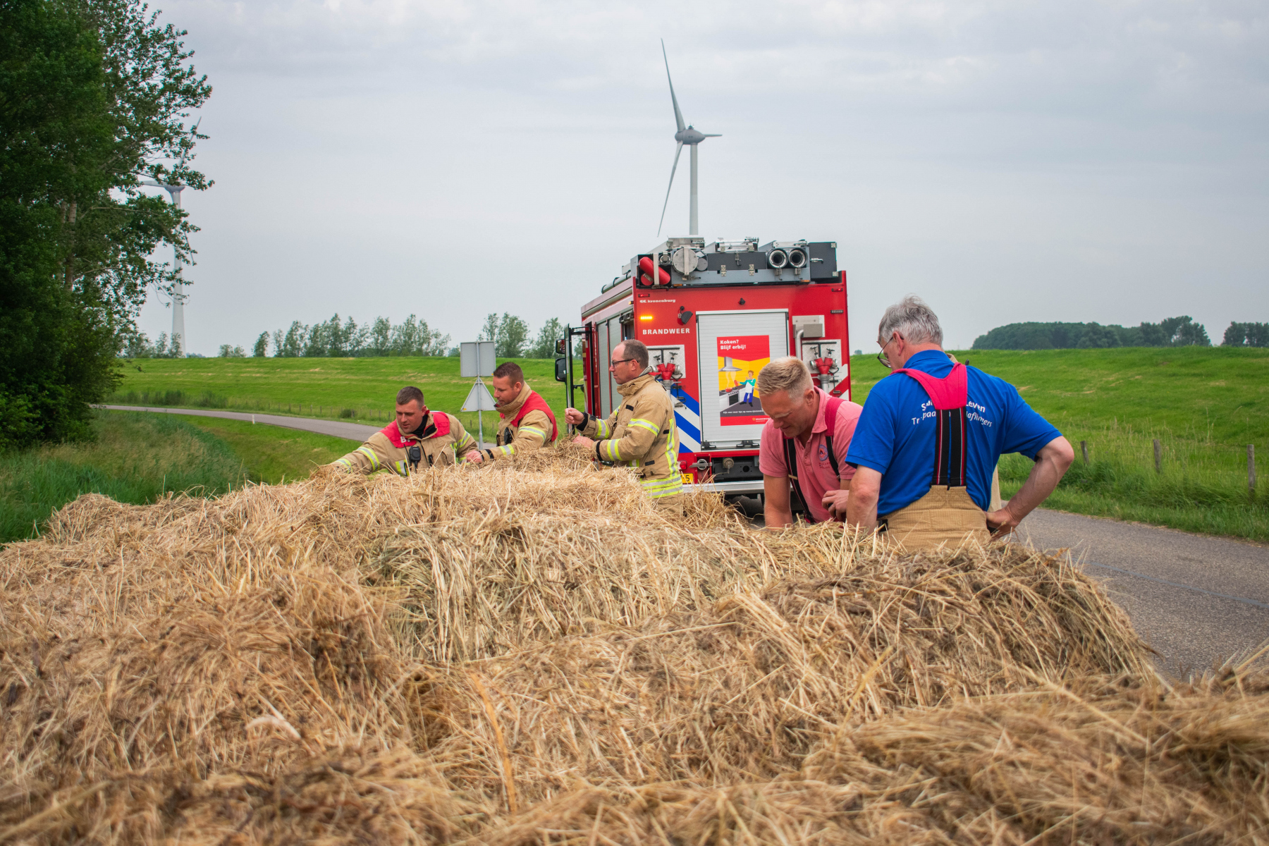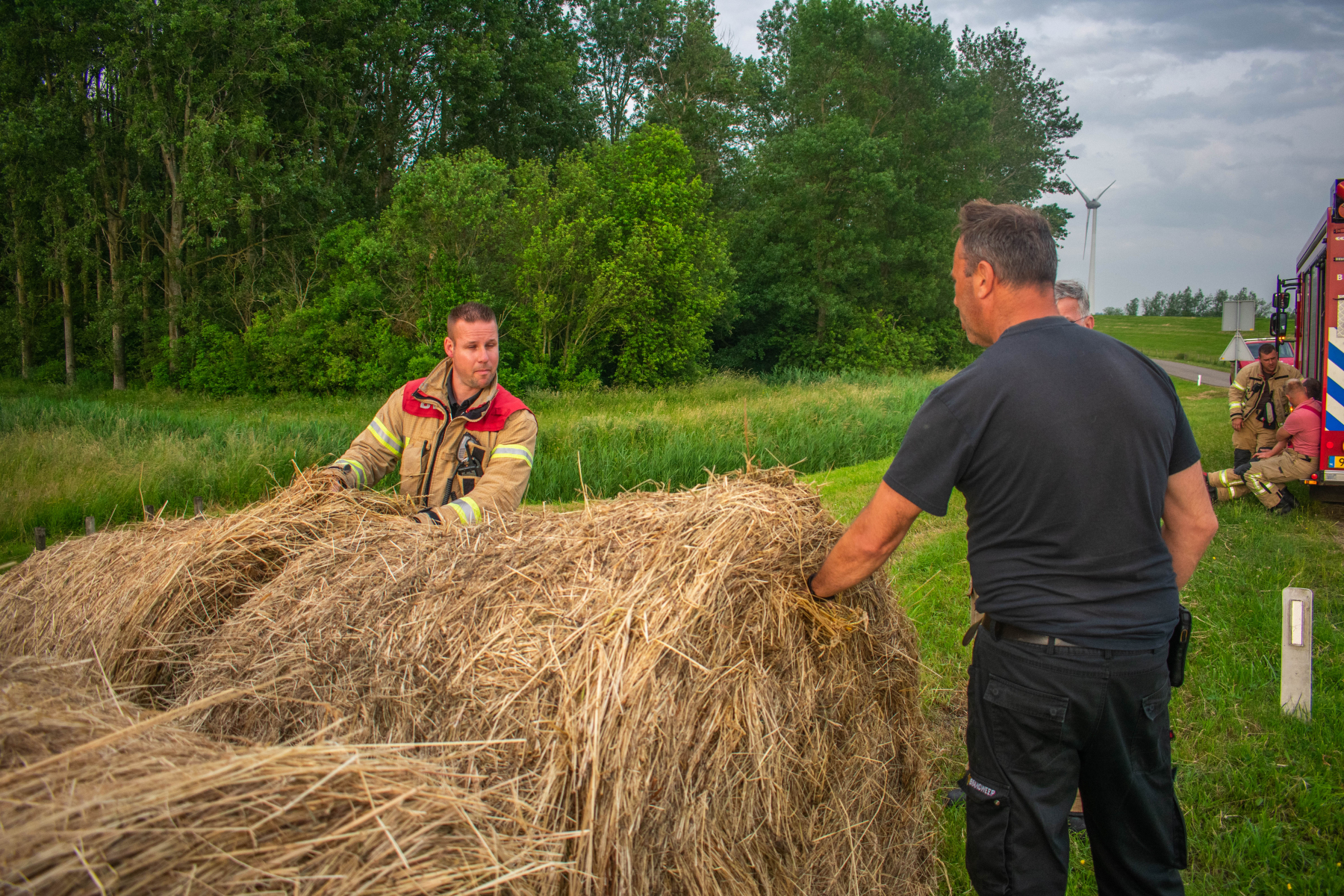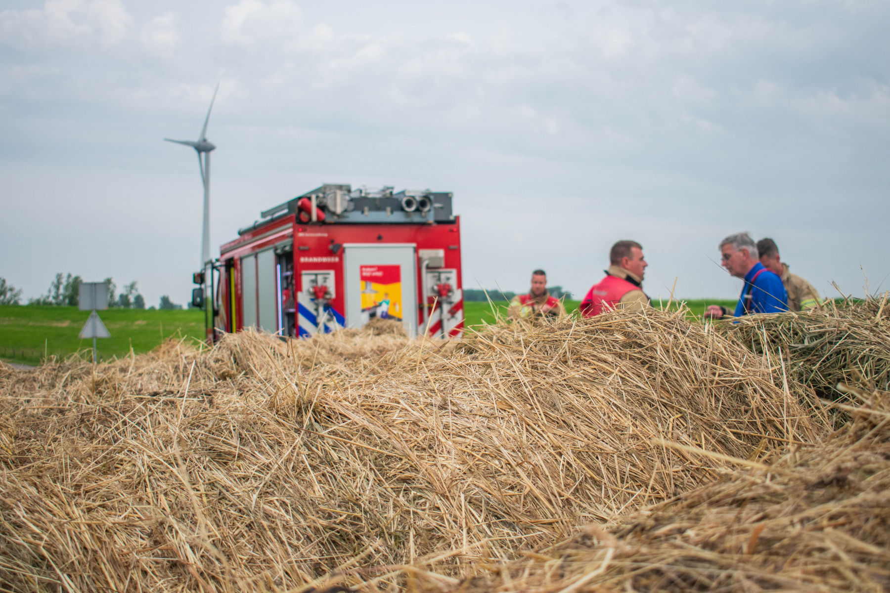 De ter plaatse geroepen officier van dienst heeft samen met de gemeente en wegbeheerder afgesproken dat de balen weg gehaald moeten worden. Anders ontstaat op een gegeven moment wel een kans op ontbranden, of zullen nog meer mensen de brandweer bellen.