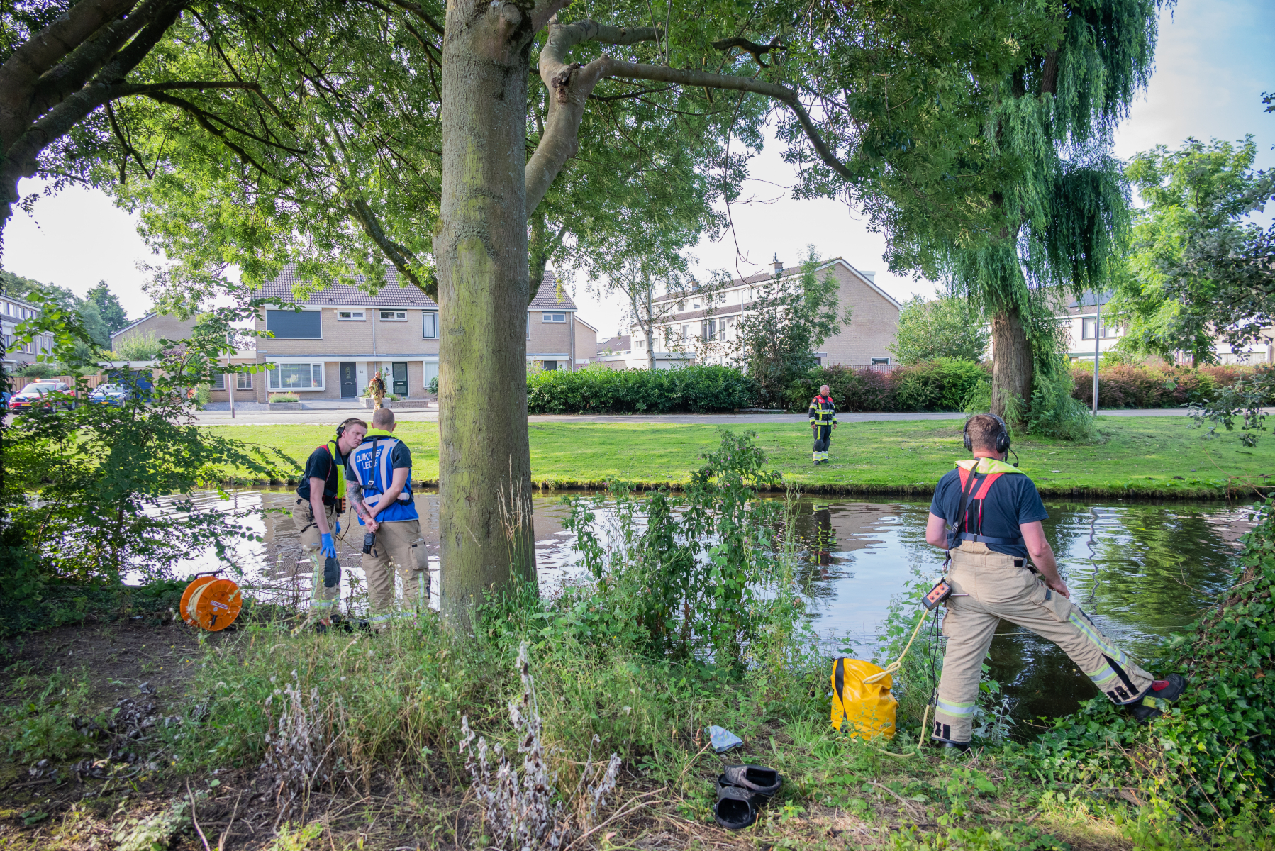 Spijkenisse – De brandweer is vanmorgen rond kwart over 9 opgeroepen voor een persoon te water aan de Meeuwenhoek. Langs de waterkant van een sloot was kinderkleding gevonden.