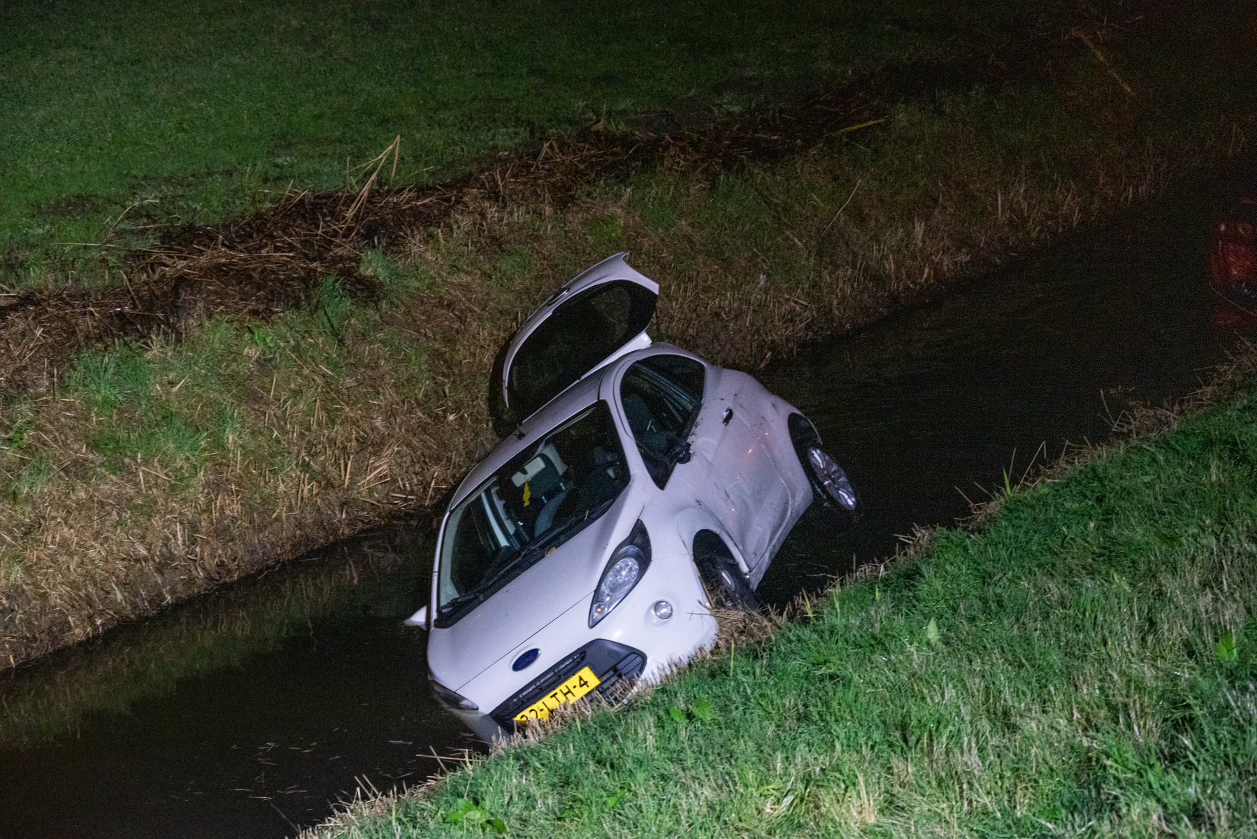 Simonshaven – De hulpdiensten zijn vannacht iets voor 1 uur groot uitgerukt voor een voertuig te water aan de Molendijk in Simonshaven. Voorbijgangers hebben een auto in de sloot zien liggen zonder persoon erbij.
