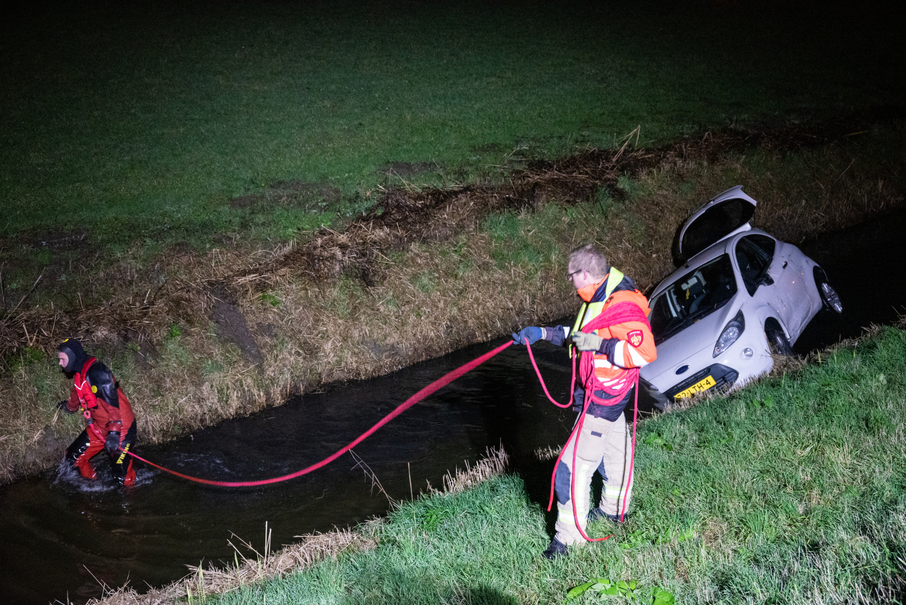 Hulpdiensten rukken groot uit voor voertuig te water