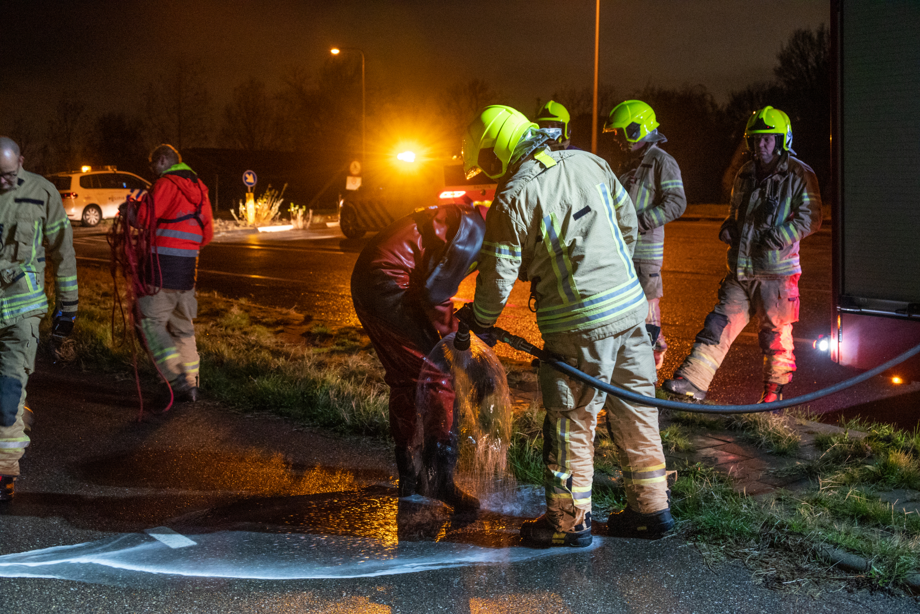 In eerste instantie werd de melding gedaan aan de Nieuwe Veerdam. Maar het bleek dus een aantal honderden meters verderop te zijn. Als snel bleek dat de bestuurster naar een nabijgelegen boerderij was gelopen en bleek niks te mankeren. Hierom kon er als snel afgeschaald worden en de traumahelikopter, die ook onderweg was, bij Hoogvliet om kon keren. De brandweer heeft voor de zekerheid de sloot nog doorzocht maar ook verder niks aangetroffen.